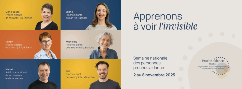 Du 2 au 8 novembre 2025, prenons le temps d’apprendre à voir l’invisible : le rôle essentiel joué par les personnes proches aidantes et par les organismes communautaires qui les accompagnent et les soutiennent chaque jour.