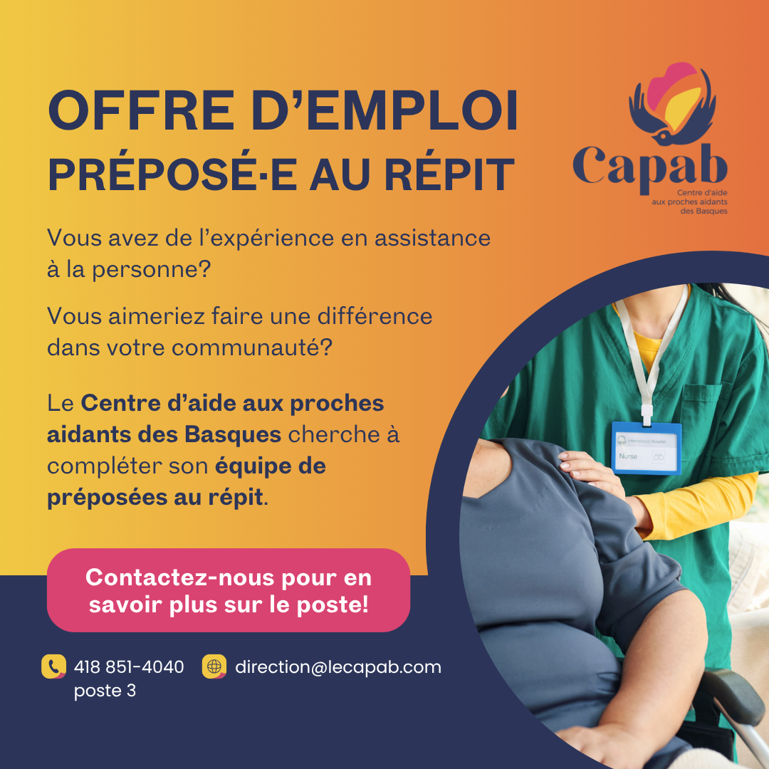 Le CAPAB cherche à compléter son équipe de préposées au répit.